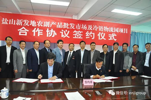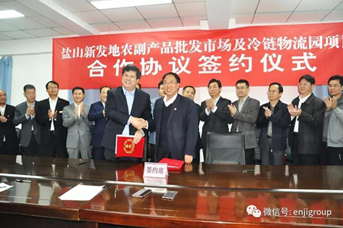 鹽山縣與北京新發(fā)地市場正式簽署“北京新發(fā)地鹽山農(nóng)副產(chǎn)品批發(fā)市場及冷鏈物流園項目”合作協(xié)議。